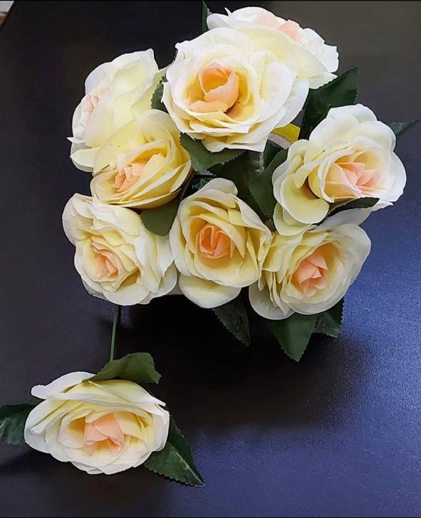 Adaugă rafinament aranjamentelor tale florale cu aceste capete de trandafiri, montate pe tulpină, cu o lungime de aproximativ 27 cm. Realizate din material textil de calitate, sunt ideale pentru buchete, decoruri de eveniment sau proiecte creative.