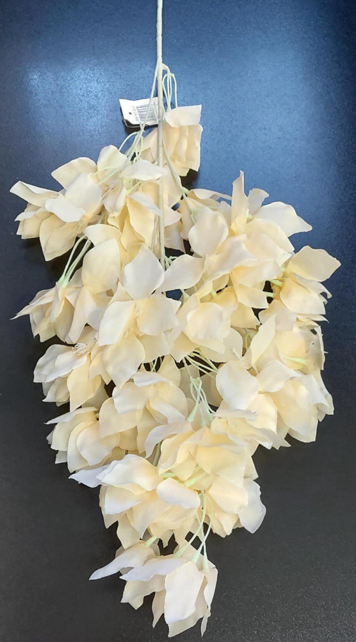 Un fir floral cu nuanțe calde și naturale, perfect pentru decoruri rafinate. Glicina artificială de 100 cm în tonuri somon deschis este realizată din material textil și imită perfect florile reale, fiind ideală pentru amenajări florale suspendate sau pereți florali.