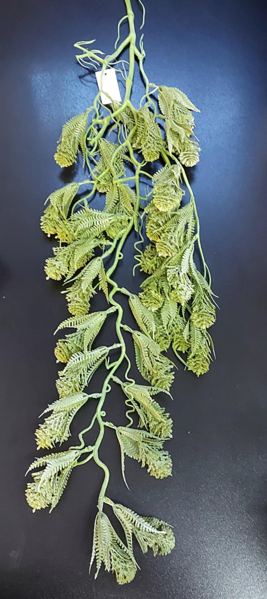 Floare decorativă curgătoare de 100 cm, cu design exotic și frunze tip ferigă, ideală pentru decoruri tematice, spații verzi artificiale sau evenimente speciale. Efect spectaculos, ușor de montat și fără întreținere. Perfectă pentru casă, birou sau vitrine comerciale.