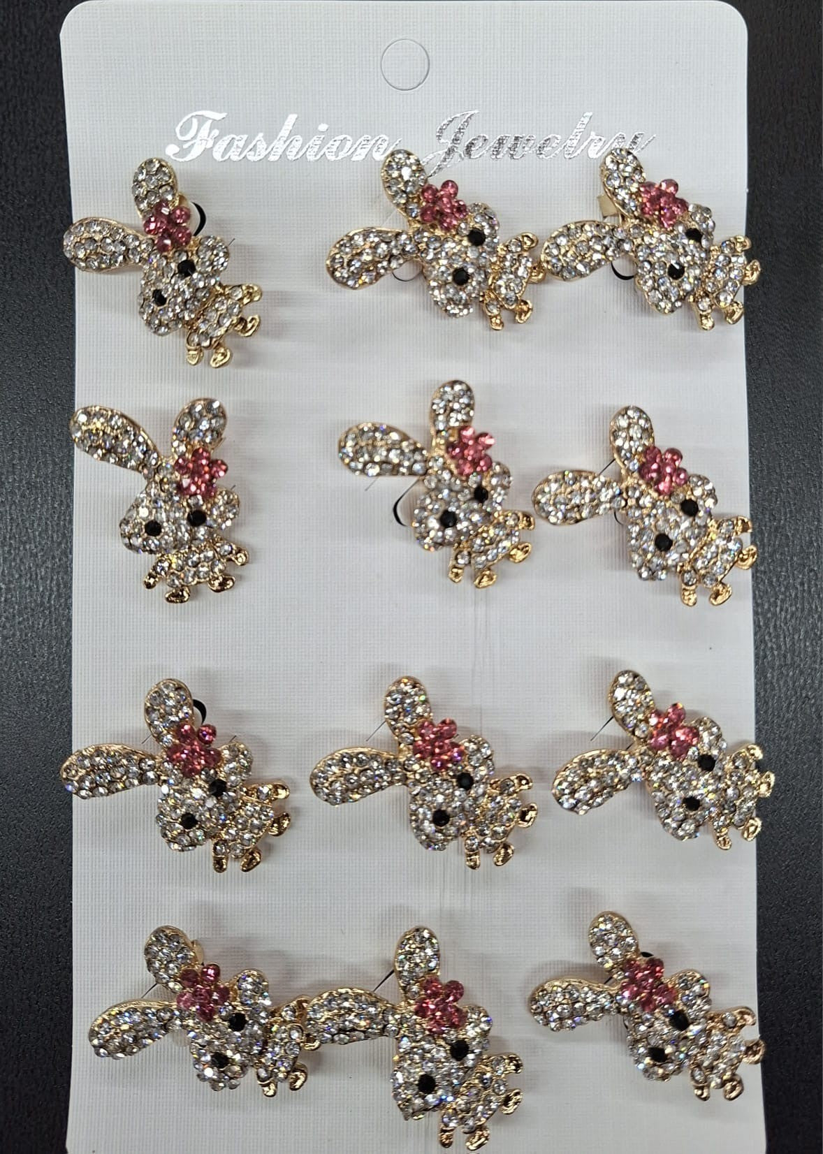 Adaugă un plus de farmec și strălucire ținutelor tale cu acest set de 12 broșe decorative în formă de iepuraș. Fiecare broșă este realizată într-un finisaj metalic elegant, decorată cu strasuri argintii strălucitoare și un delicat detaliu floral roz, care oferă un aspect jucăuș, dar rafinat.