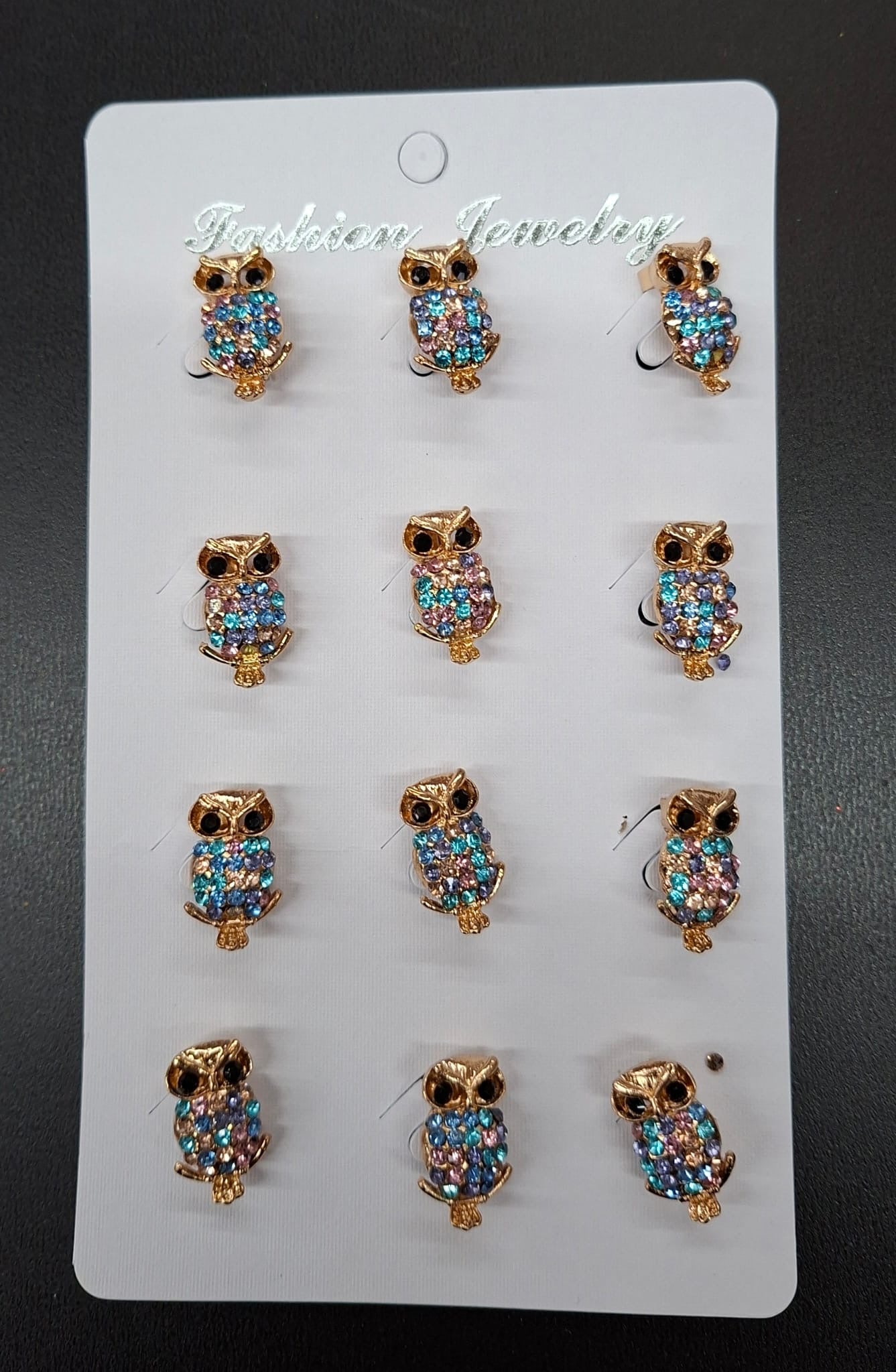 Adaugă un accent elegant și simbolic ținutelor tale cu acest set de 12 broșe decorative în formă de bufniță. Realizate într-un finisaj auriu, broșele sunt decorate cu strasuri multicolore (albastru, roz, turcoaz, mov), oferind un efect vizual strălucitor și modern.