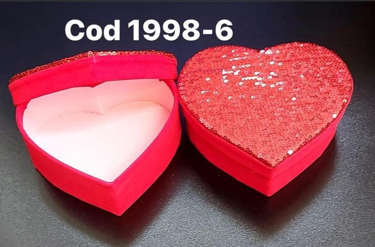 Cutie din catifea fină, în formă de inimă, culoare roșie, cu dimensiunea de 14 × 12 cm, prevăzută cu capac decorativ acoperit cu paiete strălucitoare. Designul elegant și textura luxoasă oferă un impact vizual puternic, ideal pentru cadouri romantice și aranjamente speciale.