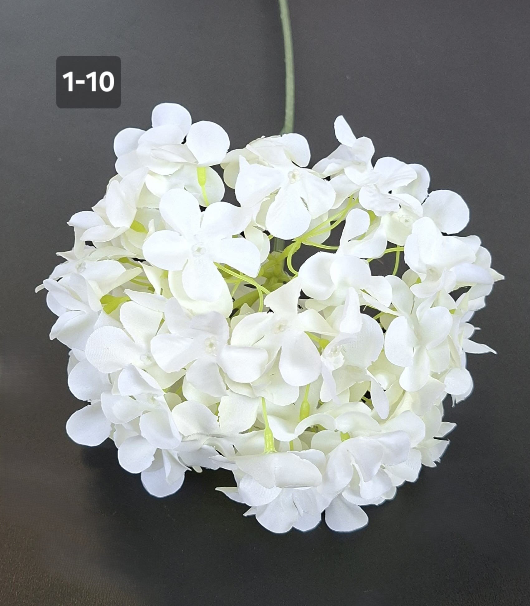 Hortensia artificială pe fir, în nuanță alb crem, este o alegere elegantă pentru realizarea aranjamentelor florale rafinate și a decorurilor moderne. Floarea bogată, cu diametrul de 16 cm, este alcătuită din numeroase petale delicate care creează un aspect natural și voluminos.