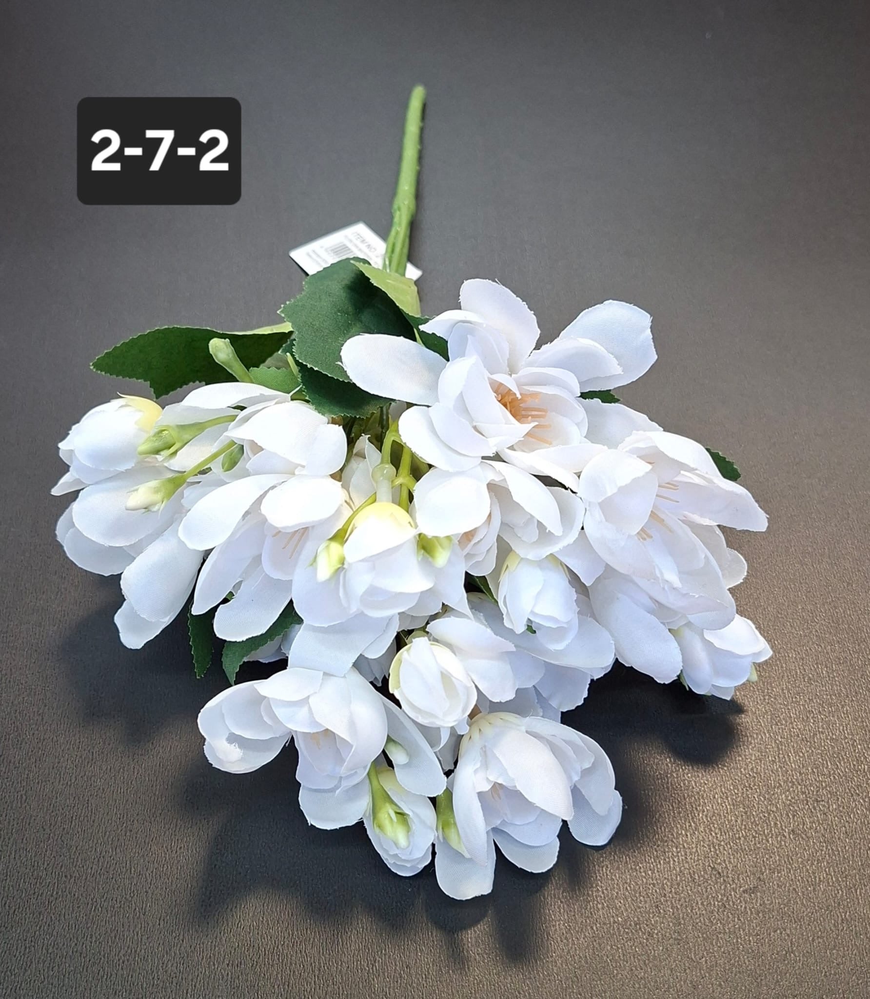 Adaugă un plus de rafinament decorului tău cu acest buchet de flori artificiale de salcâm, în nuanță albă pură. Realizat din materiale textile de calitate, buchetul conține multiple inflorescențe cu aspect realist, completate de frunze verzi decorative. Ideal pentru vaze, aranjamente florale sau decoruri tematice, acest model oferă eleganță fără întreținere.