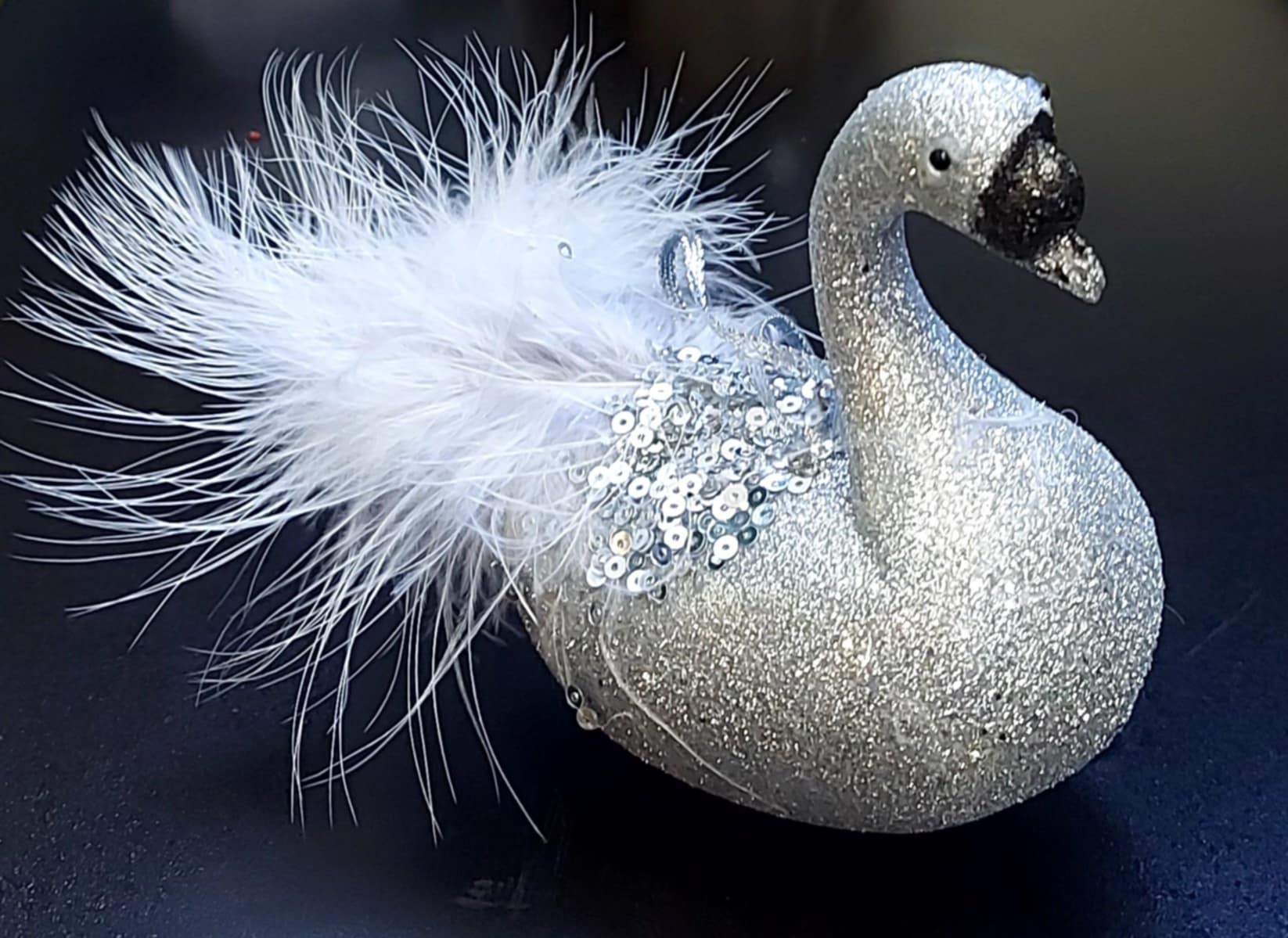 Adaugă o notă de eleganță bradului tău de Crăciun cu această lebădă argintie decorativă. Realizată cu finisaj strălucitor glitter, pene albe delicate și detalii cu paiete, această decorațiune aduce rafinament și strălucire în orice decor festiv. Perfectă pentru brad, aranjamente de masă sau decorațiuni de iarnă, lebăda simbolizează grația și frumusețea, transformând sărbătorile într-o poveste de iarnă.