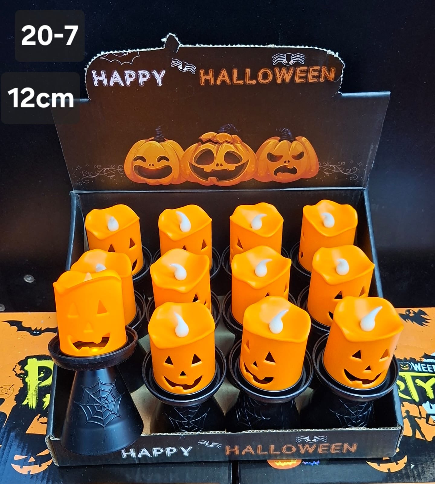 Creează o atmosferă spectaculoasă de Halloween cu acest set de 12 lumânări decorative în formă de dovleac cu LED! Fiecare lumânare are 12 cm, suport negru cu model pânză de păianjen și lumină caldă portocalie, perfectă pentru petreceri, vitrine sau decoruri tematice. Un accesoriu inedit ce îmbină stilul clasic cu efectul modern de iluminare LED.