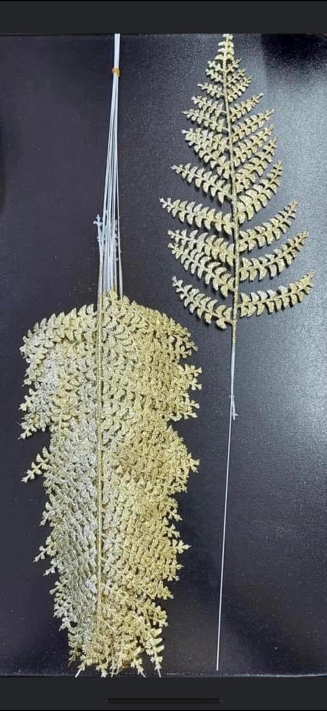 Set de 12 frunze decorative aurii cu sclipici strălucitor, model exotic alungit. Realizate din material ușor și flexibil, aceste frunze sunt ideale pentru aranjamente florale, buchete, decoruri de nuntă, evenimente festive sau proiecte DIY. Strălucirea lor aurie oferă un efect spectaculos și adaugă un plus de eleganță oricărui decor.
