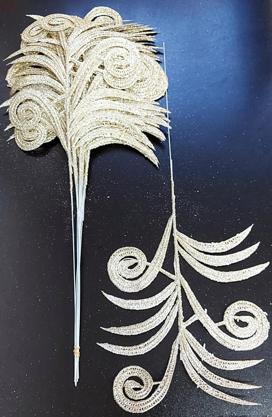 Set de 12 frunze decorative champagne cu sclipici, model spirală rafinat și strălucitor. Ideale pentru aranjamente florale, decoruri festive, nunți, evenimente elegante și design interior. Nuanța champagne cu sclipici oferă un plus de lux și sofisticare fiecărui decor. 🌟