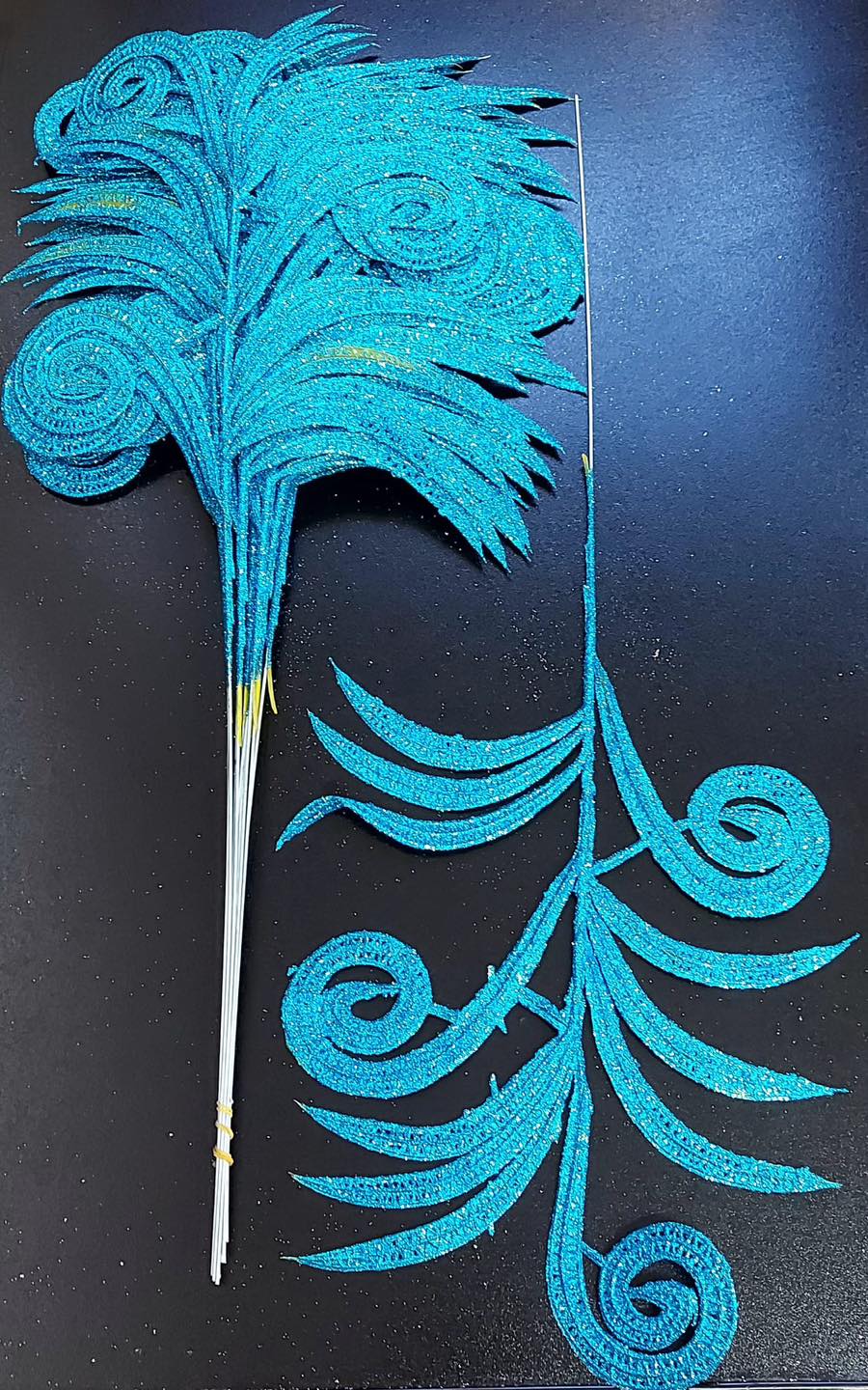 Set de 12 frunze decorative turcoaz cu sclipici, model spirală elegant și modern. Ideale pentru aranjamente florale, decoruri festive, nunți, botezuri sau evenimente speciale. Turcoazul intens cu sclipici oferă un efect vibrant și spectaculos. 🌟