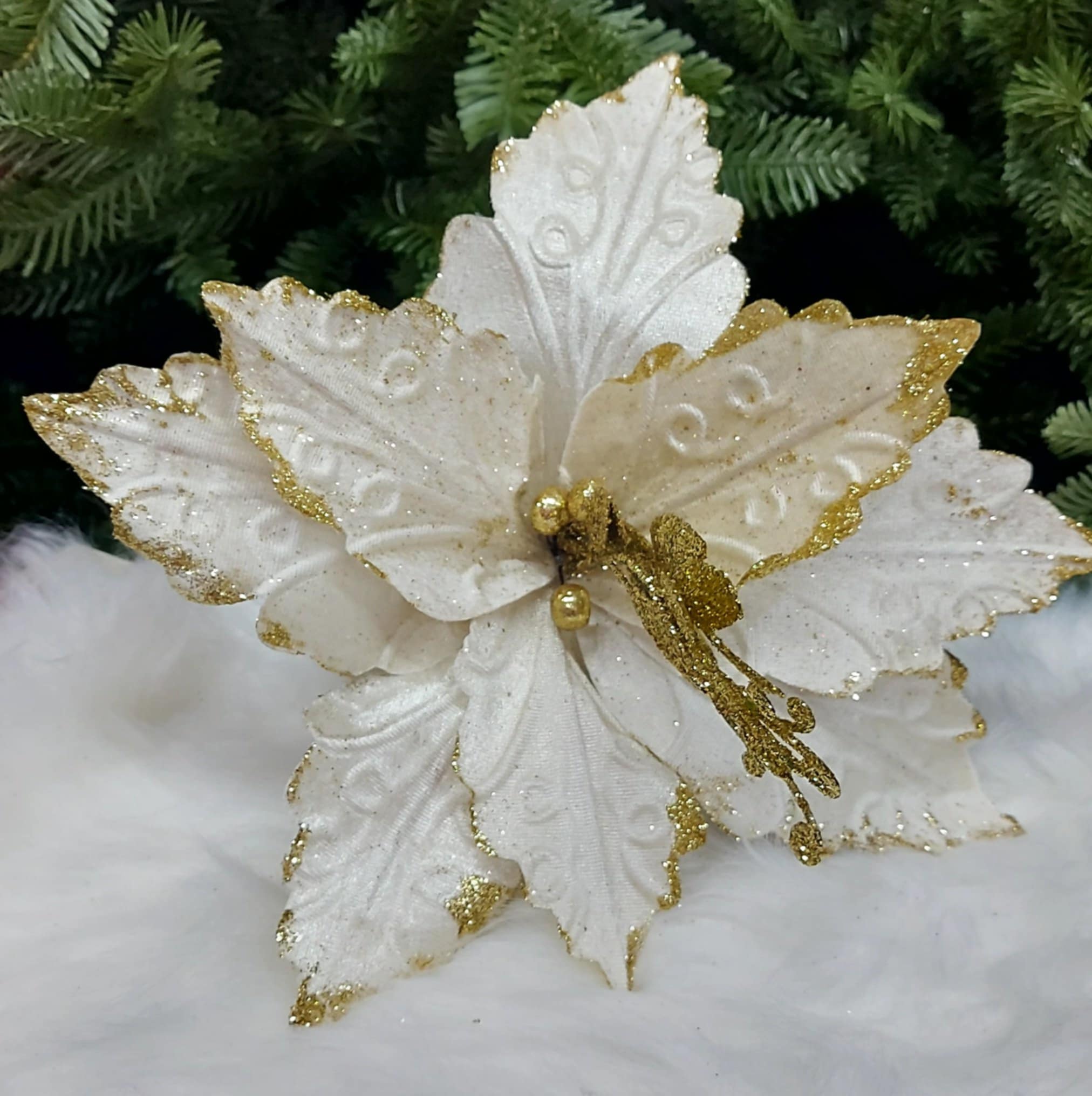 Adaugă o notă elegantă bradului tău de Crăciun cu aceste flori crem, ornate cu sclipici auriu. Realizate din material textil fin, fiecare floare strălucește discret în lumina instalației, oferind un efect rafinat și festiv. Setul conține 10 flori, ideale pentru împodobirea bradului, coronițelor, aranjamentelor de masă sau decorurilor de iarnă. Ușor de prins și refolosit an de an.