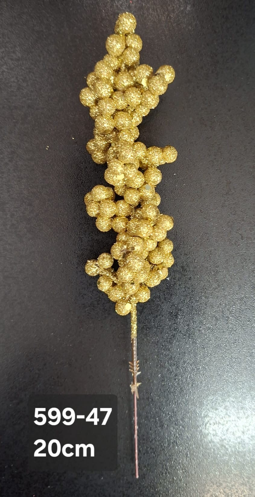 Set de 100 bobițe decorative aurii cu glitter, pe tijă de 20 cm. Accesorii elegante pentru brazi, coronițe, aranjamente florale și decorațiuni de Crăciun. Ușor de folosit în proiecte DIY, oferind un efect strălucitor și festiv.