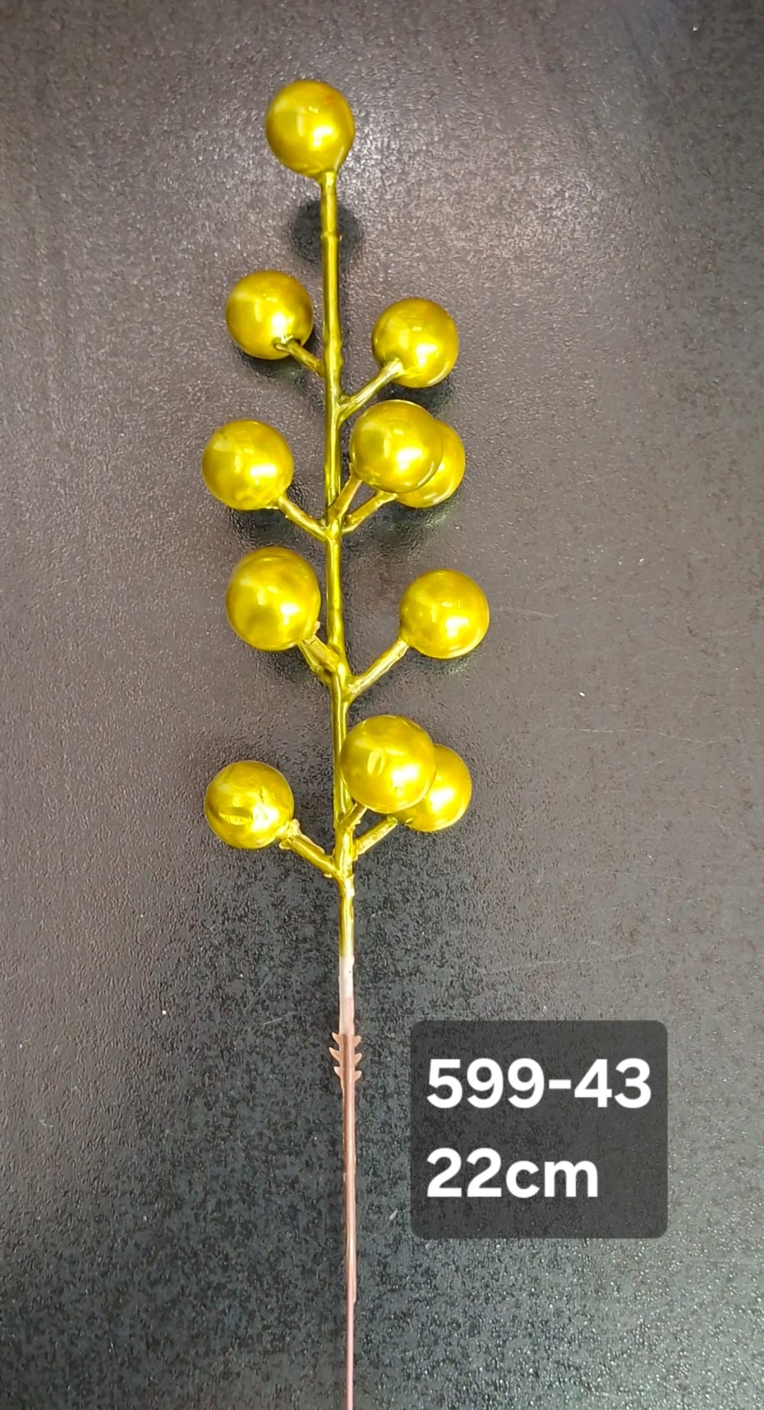 Set de 100 bobițe decorative aurii lucioase, montate pe tijă de 22 cm. Accesorii ideale pentru brazi de Crăciun, aranjamente florale, coronițe și decorațiuni festive. Efect elegant și strălucitor, potrivit pentru decoruri premium și proiecte DIY.