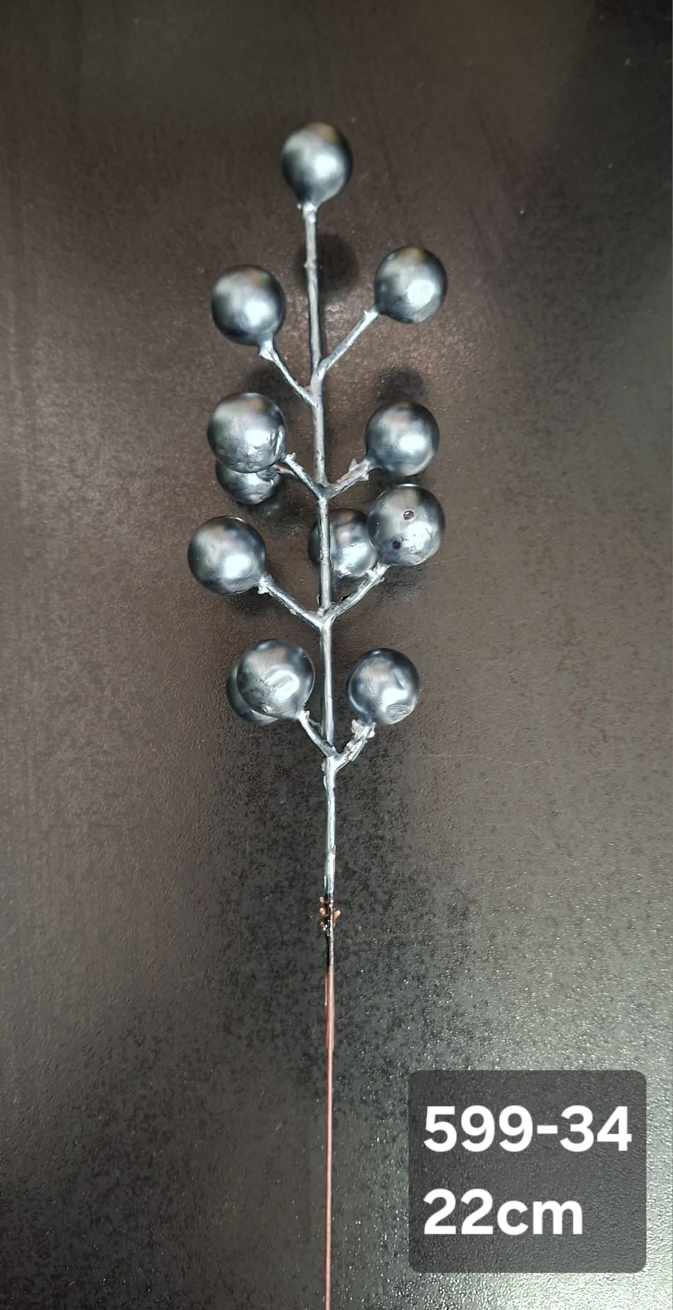 Set de 100 bobițe decorative argintii metalizate, pe tijă de 22 cm. Accesorii moderne pentru aranjamente florale, brazi de Crăciun, coronițe și decorațiuni festive. Efect elegant și strălucitor, ideale pentru decoruri premium și proiecte DIY.