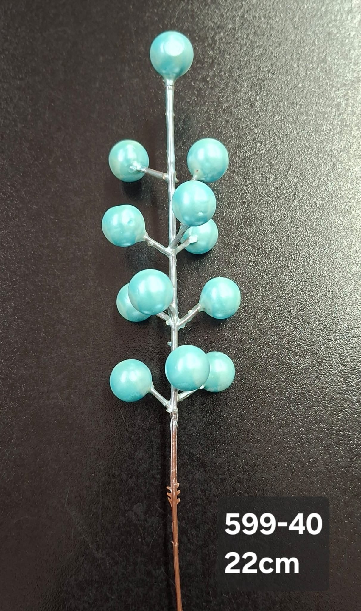 Set de 100 bobițe decorative turcoaz lucioase, pe tijă de 22 cm. Accesorii ideale pentru aranjamente florale, brazi de Crăciun, coronițe și decorațiuni festive. Adaugă un plus de culoare, eleganță și originalitate în orice decor.