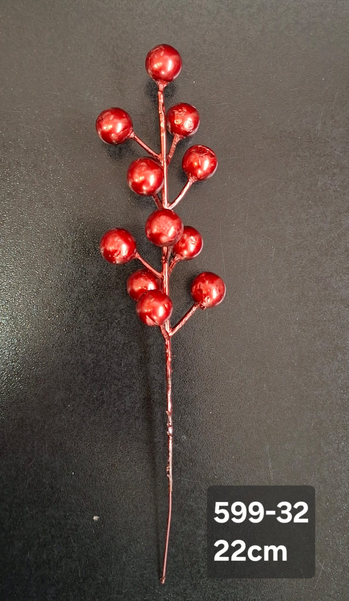 Set de 100 bobițe decorative roșii lucioase, pe tijă de 22 cm. Accesorii festive ideale pentru brazi de Crăciun, coronițe, aranjamente florale și decorațiuni DIY. Oferă un efect clasic și elegant, perfect pentru atmosfera sărbătorilor.