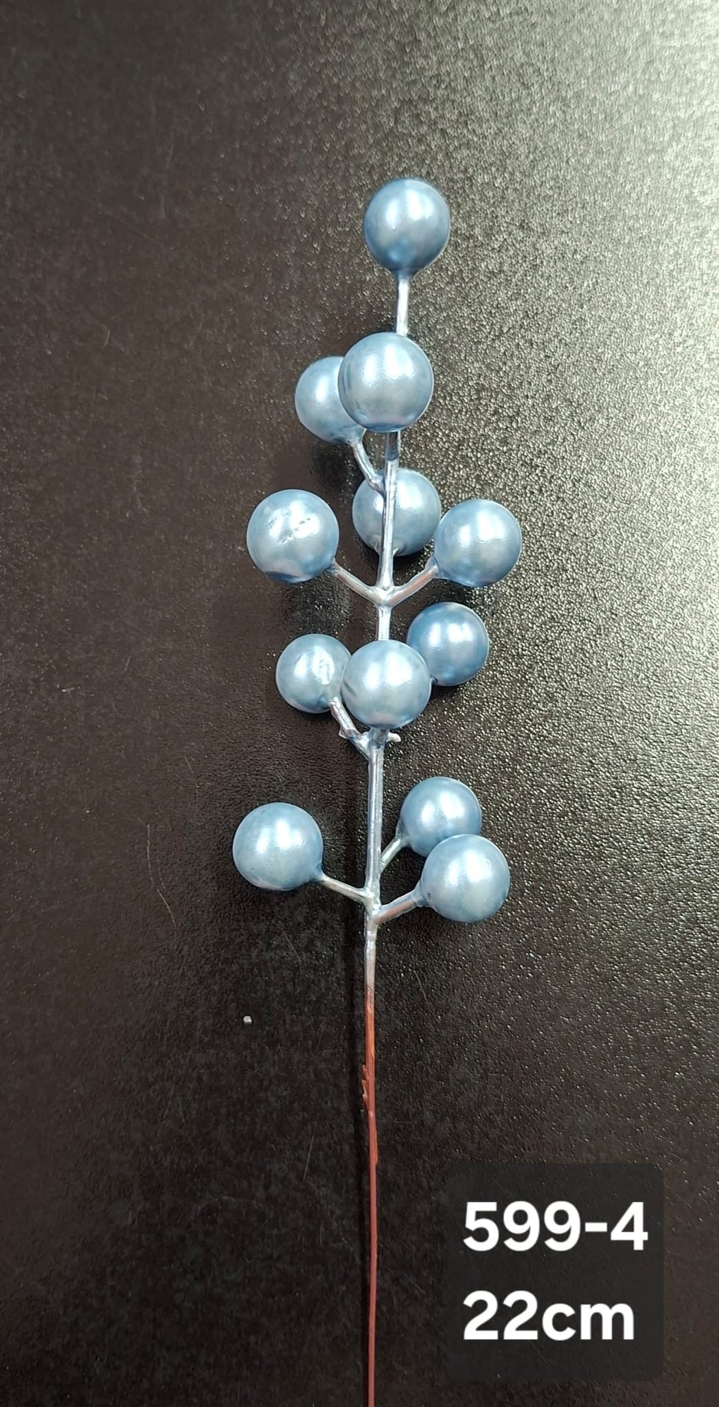 Set de 100 bobițe decorative albastre sidefate, pe tijă de 22 cm. Accesorii elegante pentru aranjamente florale, brazi de Crăciun, coronițe și proiecte DIY. Adaugă un accent rece și sofisticat decorurilor tale festive.