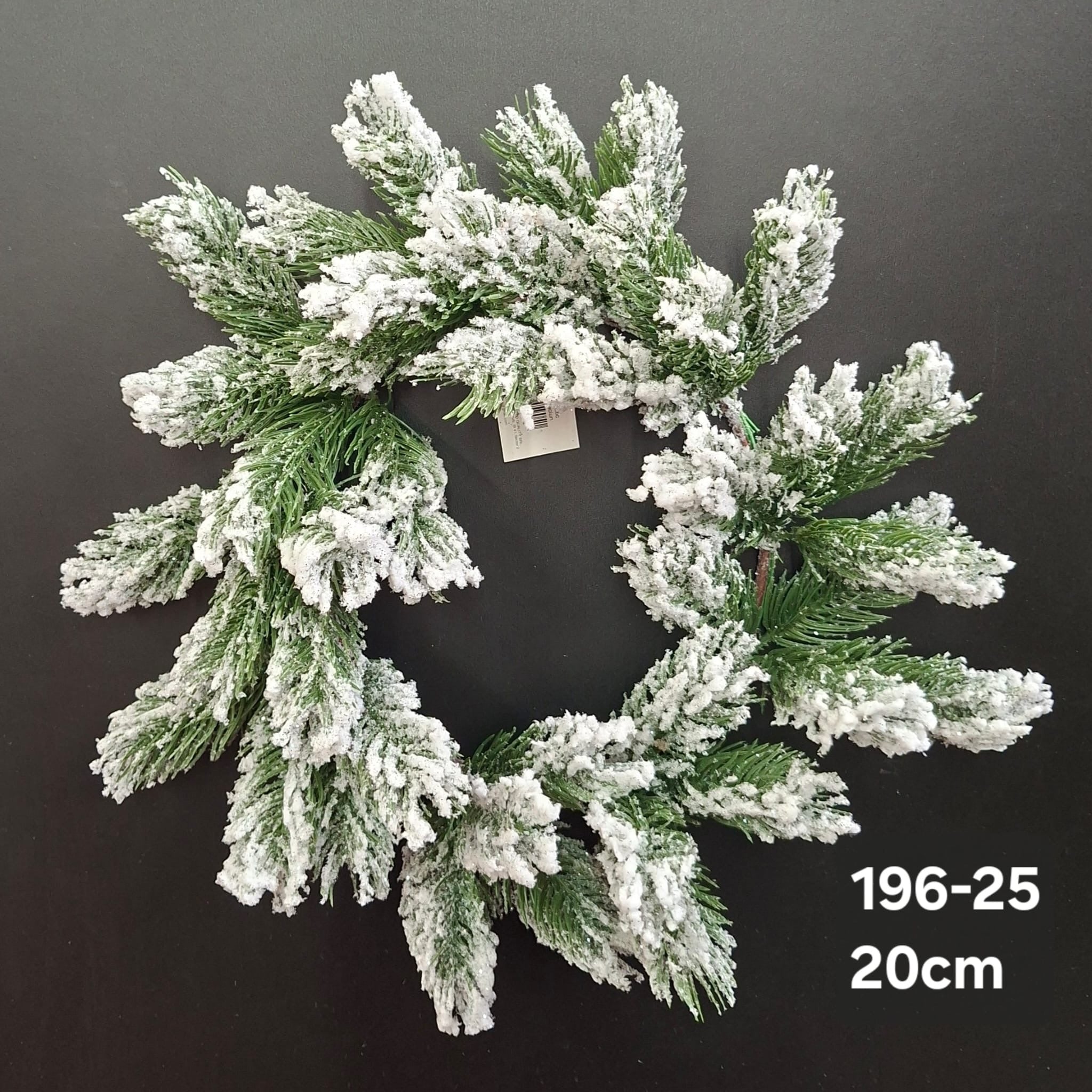 Completează decorul de iarnă cu această coroniță elegantă de Crăciun, cu ramuri verzi acoperite de zăpadă artificială. Cu un diametru de 20 cm, este ideală pentru ușă, perete sau ca decor de masă. Aspectul natural și textura fină a zăpezii oferă un aer autentic de iarnă, perfect pentru a aduce magia sărbătorilor în casa ta.