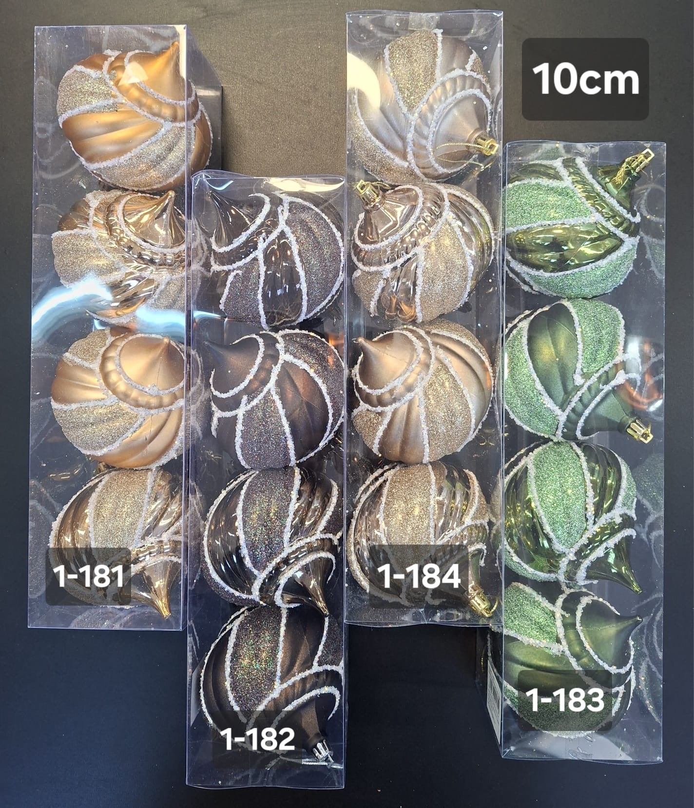 Set elegant de 4 globuri, decorate manual cu accente de sclipici și detalii în relief. Reflexiile calde oferă un aspect luxos și rafinat bradului tău de Crăciun. Disponibi in 4 culori