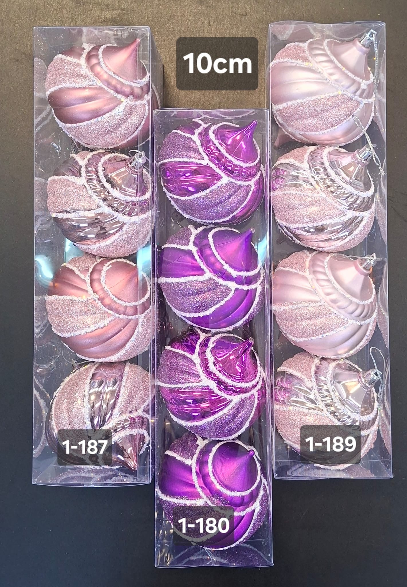 Set elegant de 4 globuri, decorate manual cu accente de sclipici și detalii în relief. Reflexiile calde oferă un aspect luxos și rafinat bradului tău de Crăciun. Disponibi in 3 culori