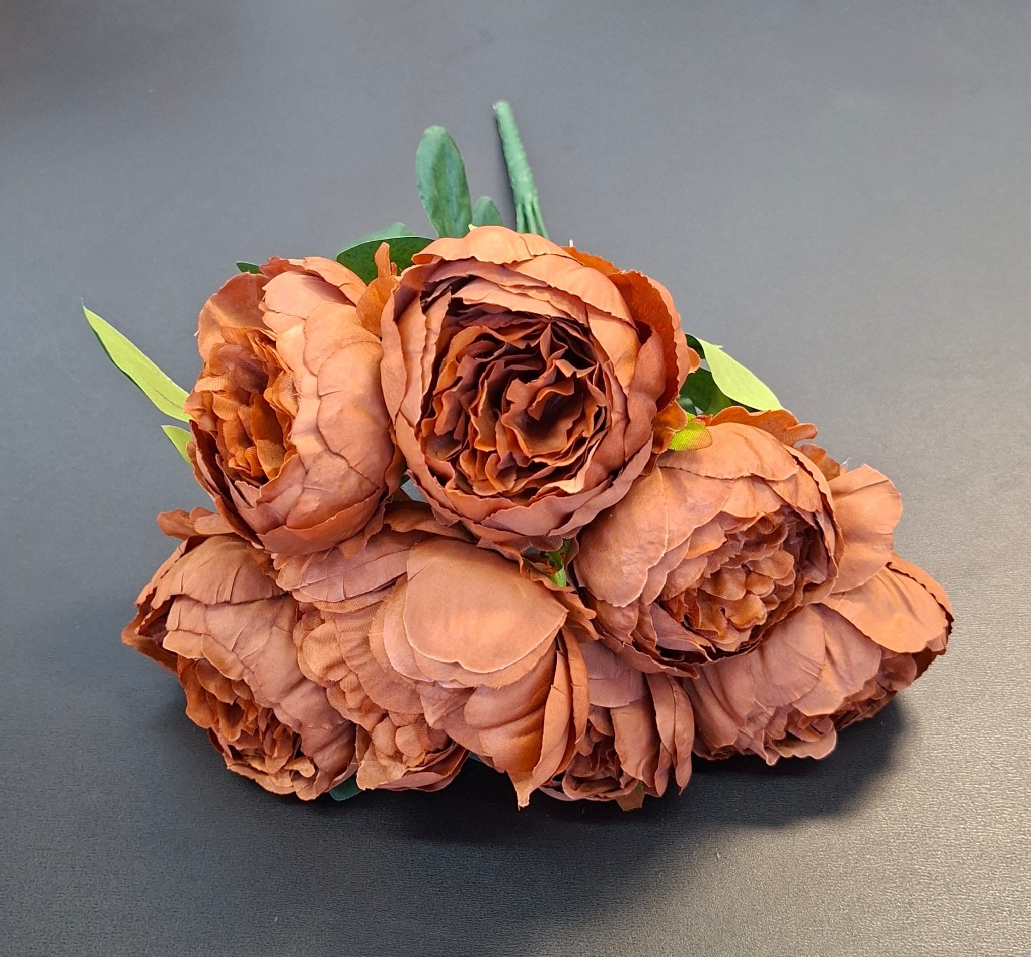 O alegere perfectă pentru decorurile cu accente naturale și tonuri pământii, buchetul de bujori artificiali în nuanța terracotta aduce un farmec aparte oricărui spațiu. Cu 7 flori bogate, cu petale texturate în detaliu și frunze decorative, acest buchet se potrivește ideal în aranjamente rustice, boho sau de toamnă. Realizat din materiale durabile, este o alternativă excelentă la florile naturale.