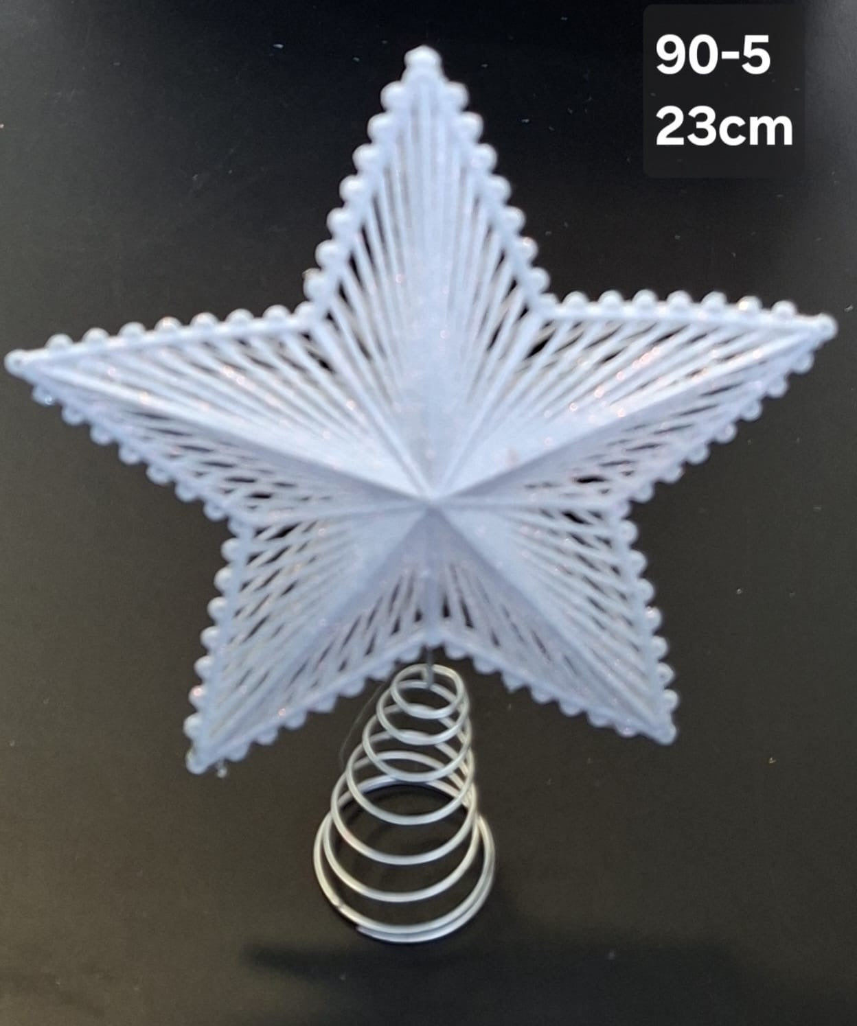 Stea elegantă pentru vârful bradului de Crăciun, realizată din material ușor și rezistent, cu detalii fine și sclipici discret.