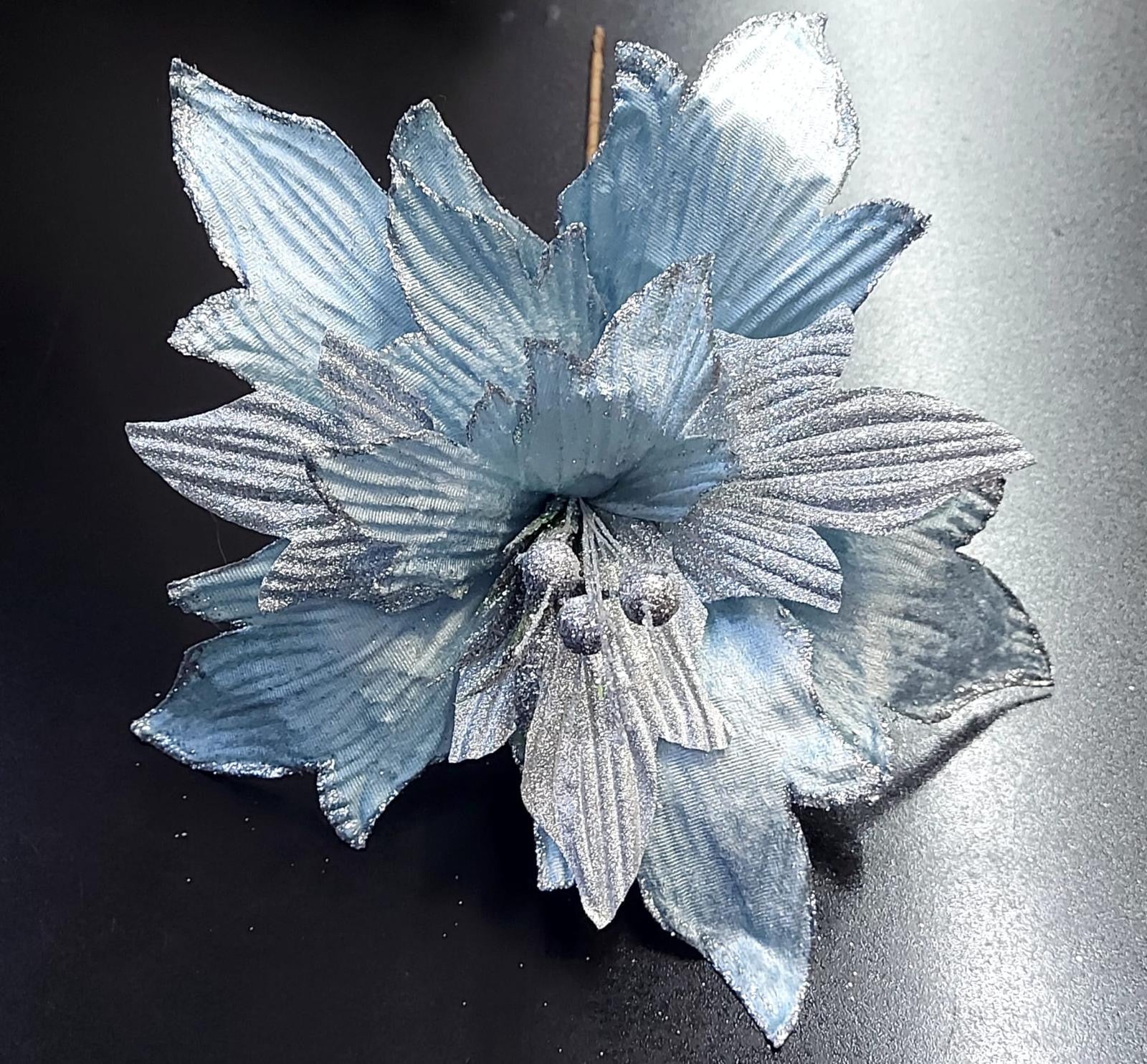 Oferă bradului tău o notă de rafinament cu aceste flori bleu și argintii, realizate din material satinat cu accente fine de sclipici. Inspirate din magia iernii, sunt ideale pentru decoruri elegante și luminoase.