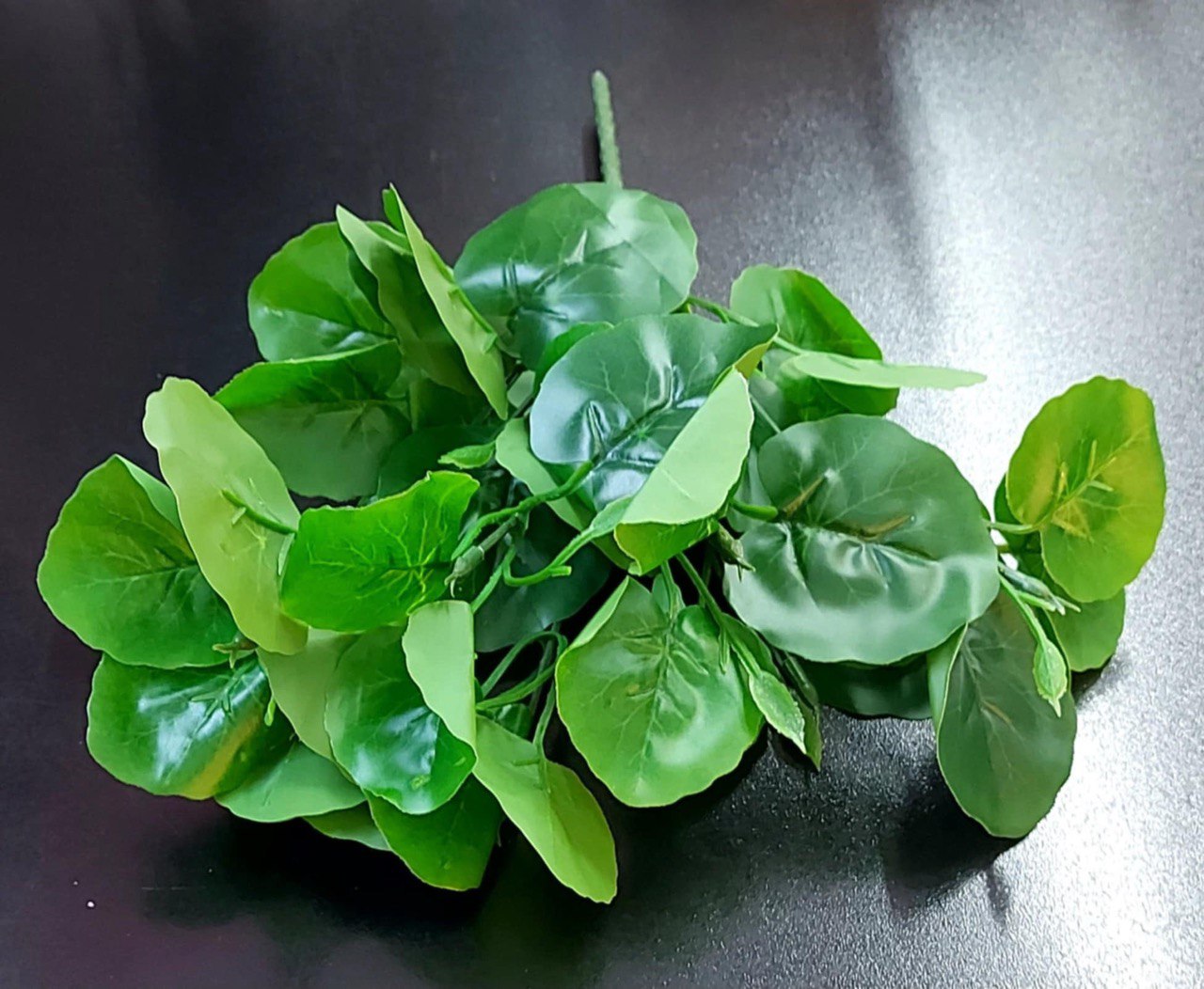 Ramură artificială cu frunze rotunjite, în nuanțe verzi bogate, cu aspect lucios pentru un plus de naturalețe. Un element versatil pentru decoruri moderne, panouri verzi, buchete sau proiecte creative.