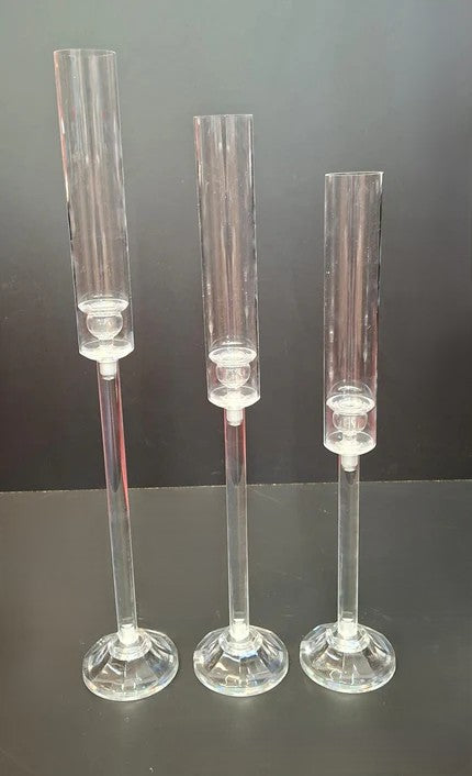 Adaugă un strop de rafinament decorului tău cu acest set de 3 sfeșnice din acryl transparent, cu design cilindric alungit și picior înalt, ideal pentru nunți, botezuri, evenimente corporate sau decoruri moderne de interior. Realizate din acryl de calitate superioară, aceste suporturi elegante pentru lumânări sau flori conferă un efect vizual spectaculos, imitând delicatețea cristalului, fără riscul de spargere.