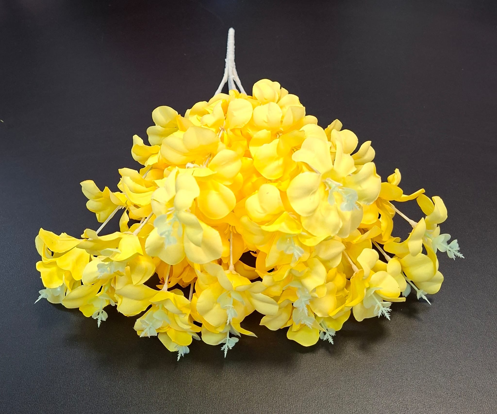 Înveselește orice decor cu acest buchet artificial de wisteria galbenă, ideal pentru spații luminoase și aranjamente pline de viață. Cu flori mici și delicate, realizate din materiale textile de calitate, buchetul oferă un efect vizual vibrant și durabil. Este perfect pentru decoruri interioare, vitrine, mese festive sau evenimente tematice.